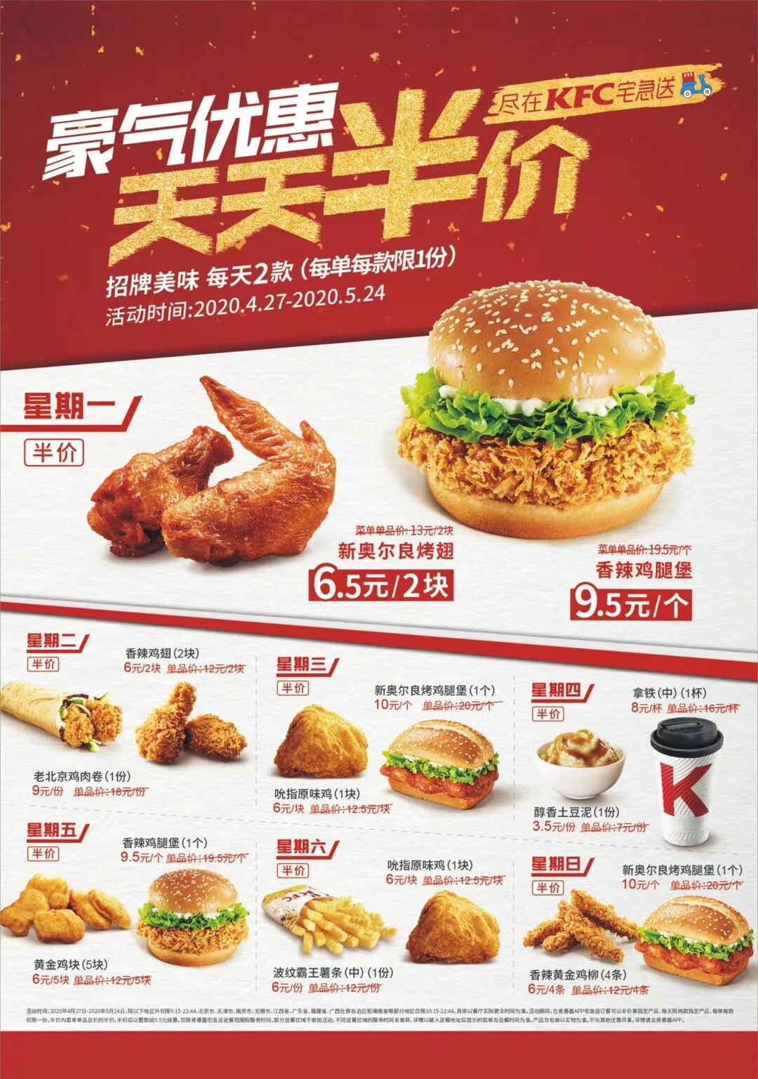 当然,在第一时间知悉老师们的上班时间后,我们协调了学校附近的肯德基长安DT餐厅,在4月28日-30日期间为老师们提供优先送餐的宅急送保障。更有天天半价的招牌美味可供选择。