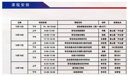 本次培训职业教育学院严格遵循中国羽毛球协会的教学大纲,课程涵盖以下内容: