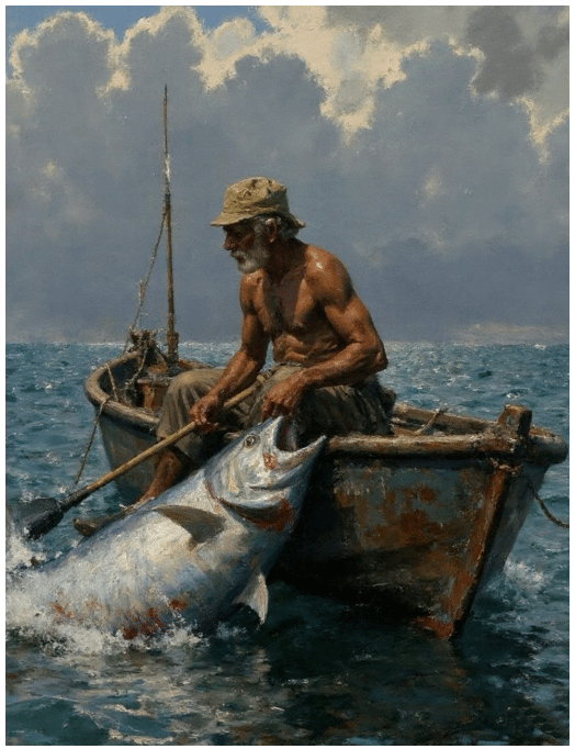 城市灯火阑珊的深夜,打开海明威的《老人与海》,就像一股带着咸腥味的海风,冲破了日常的壁垒,把我带进墨西哥湾流的辽阔中,在这里没有宏大的叙事铺排,只有老渔夫最纯粹的生存搏斗,却让我触摸到人类意志最硬核的部分。