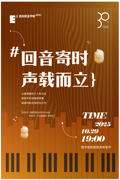 乐音婉转,源远流长,当我们从漆黑的夜空中抬起头,晚风裹挟着少年们青涩的嗓音萦绕耳畔,动听的旋律一下一下叩击着我们的心弦,秋日的凉意仿佛再次席卷全身,把我们带回到那个充满青春与梦想的音乐会。我们诚挚的邀请您参加2025年时光音乐会,将青春的乐章印烙在脑海中,在旋律中邂逅往昔,于歌声中挺立青春。