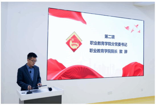 西安欧亚学院职业教育学院分党委书记、职业教育学院院长段永刚老师致辞。