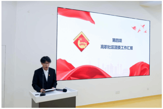 西安欧亚学院高职青年社区团委委员刘鑫代表上一届委员会向大会作工作报告。