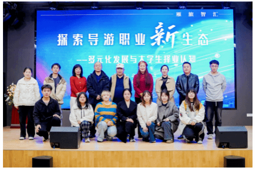 导游团队管理者、导游培训专家及青年新锐导游等嘉宾也分别从团队管理实践、职业技能提升、新生代导游成长路径等角度展开分享。西安海外金牌导游服务中心经理王佳结合10年导游团队管理经验,解析了数智化技术对导游工作模式的冲击与重构,提出“技术赋能+人文素养”的复合型人才培养理念;深耕导游培训领域25年的行业专家、高级导游宁磊则聚焦导游证考试与职业技能提升,为学生提供了针对性的备考建议与职业规划指导;青年高级导游李怡以自身从旅游管理专业学生到西安市金牌导游的成长轨迹,激励在场学子坚持专业追求,践行职业使命。
