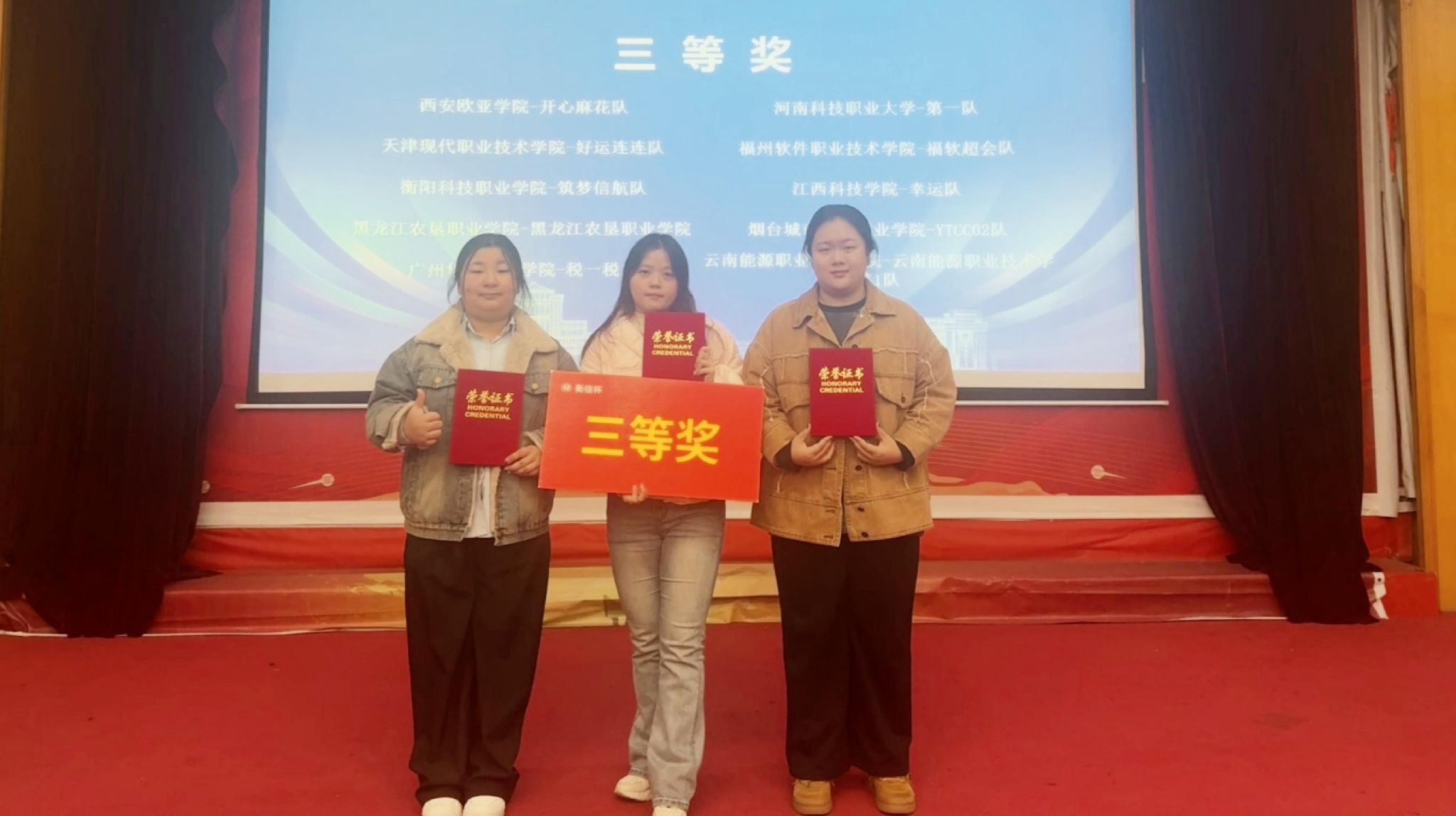 2025 年 11 月 28 日 - 30 日,第十一届 “衡信杯” 全国大学生智慧税务大赛总决赛在江西财经大学圆满落幕。西安欧亚学院职业教育学院 “开心麻花队”(张林欣、邓蕾、张钰涵)凭借扎实的专业功底与默契的团队协作,从全国众多参赛队伍中脱颖而出,成功拿下全国总决赛三等奖,用实力展现了该校财税人才培养的亮眼成果,更彰显了新时代大学生拥抱数字化变革、服务国家发展的青春担当!